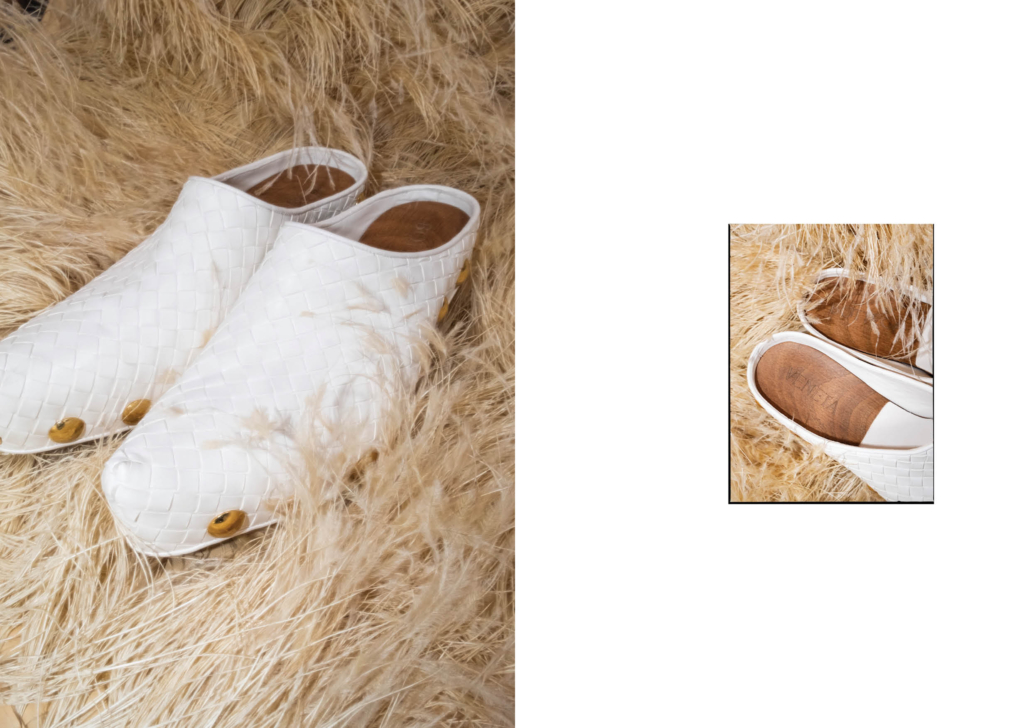 羽毛造型皮革上衣、GONDOLA 穆勒鞋 |ALL BY BOTTEGA VENETA。