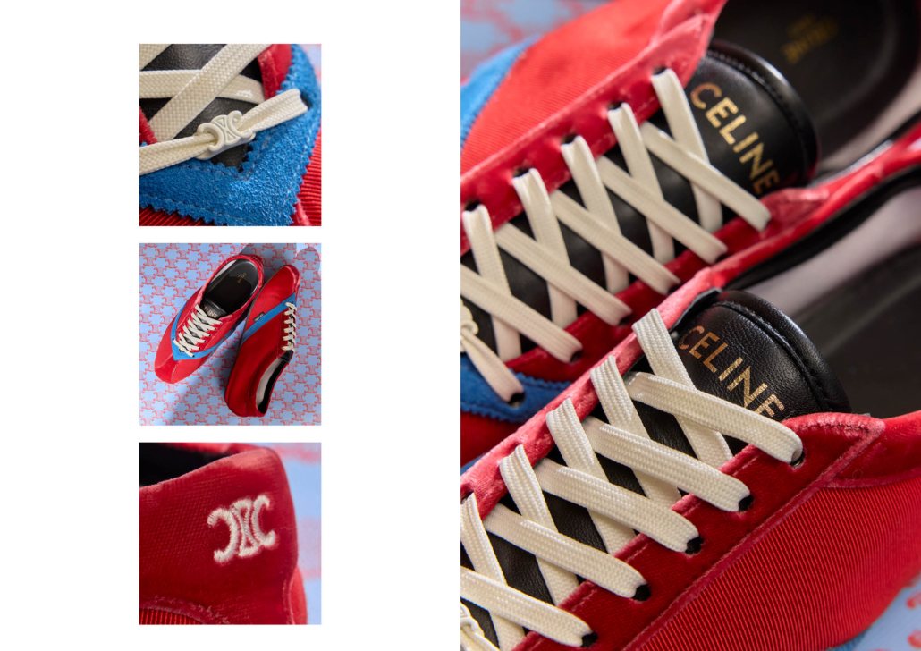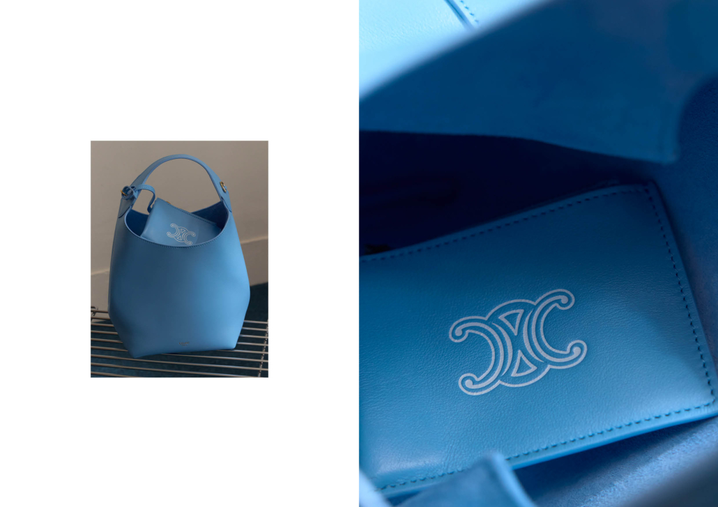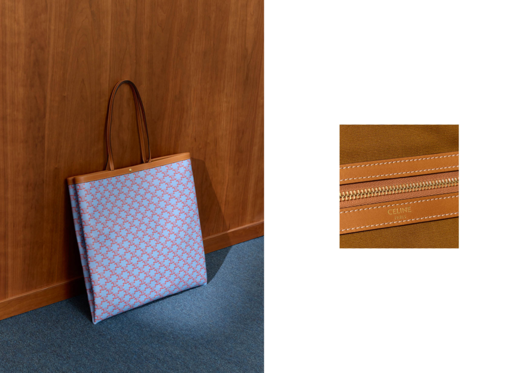 湖水藍TRIOMPHE CANVAS托特包化身為一台精密的黑膠唱盤。剛入手的幾張戰利品安穩地裝入袋中,是預想中的旋律。 午後的光線漫不經心地停留在包身表面,輕輕拂過凱旋門圖騰,一切美得理所當然。鏡頭切換,包款隨性地靠在木質牆邊,維持著它立體而俐落的輪廓 。那些精湛的縫線、邊緣的收束與溫潤的皮革手把, 在空氣中凝結成一個暫停的片段,靜靜等待著下一次被提起的時刻。重量感隨著皮革提把落下,步伐隨之邁出。腳下那雙紅色運動鞋穩定不急促、不遲疑的踩在地面上;像是一顆電影特寫鏡頭,金屬扣件間閃過一抹光,柔軟的皮革貼合著身體曲線,留下一個轉瞬即逝的弧度。 畫面短暫定格,隨後繼續向著城市的深處推進。最後,那枚黃色的CELINE CANDY糖果吊飾輕輕晃動,亮黃色包裝反光在鏡頭前閃爍, 像是一個藏不住的小玩笑,在嚴謹氛圍裡彈跳出夏日的頑皮惡作劇。