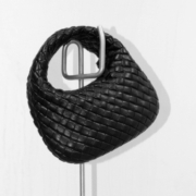 羽毛造型皮革上衣、編織皮革手提包、皮革寬管長褲、 GONDOLA 穆勒鞋| ALL BY BOTTEGA VENETA。